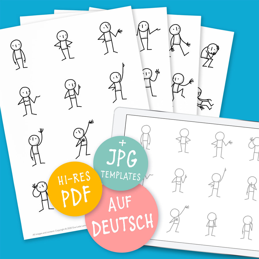 Du kannst die Illustrationen als Vorlage zum Abzeichnen verwenden, wenn du übst. Du kannst sie auch als Ausgangspunkt verwenden, um deine eigenen Szenen und Geschichten zu entwickeln. Der Download enthält auch ein 10-seitiges PDF mit Ideen und Tipps, wie du die Figuren spielerisch verwenden und eigene Geschichten entwickeln kannst.